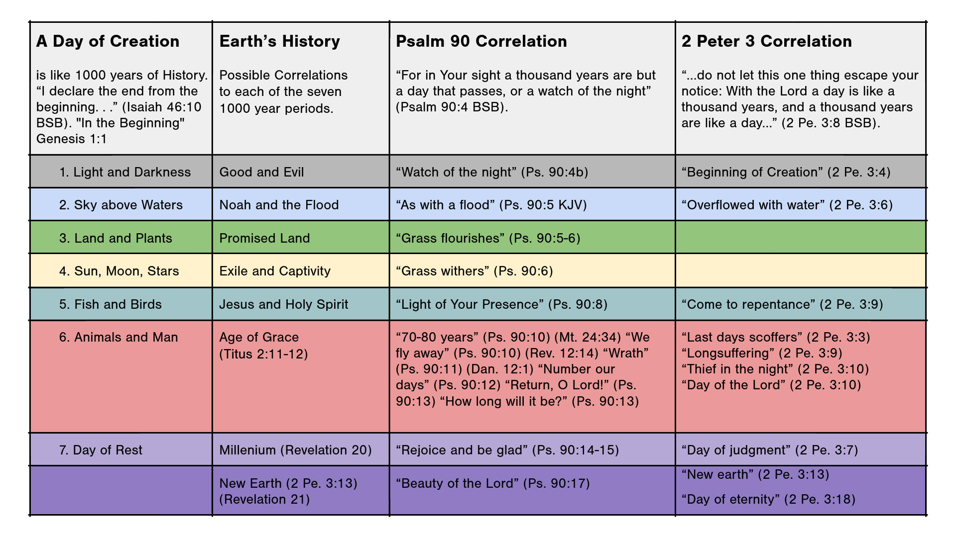 “Remember what happened long ago, for I am God, and there is no other; I am God, and there is none like Me. I declare the end from the beginning, and ancient times from what is still to come. I say, ‘My purpose will stand, and all My good pleasure I will accomplish’” (Isaiah 46:9-10 BSB).“Beloved, do not let this one thing escape your notice: With the Lord a day is like a thousand years, and a thousand years are like a day. The Lord is not slow in keeping His promise as some understand slowness, but is patient with you, not wanting anyone to perish but everyone to come to repentance” (2 Peter 3:8-9 BSB).“For in Your sight a thousand years are but a day that passes, or a watch of the night” (Psalm 90:4 BSB).